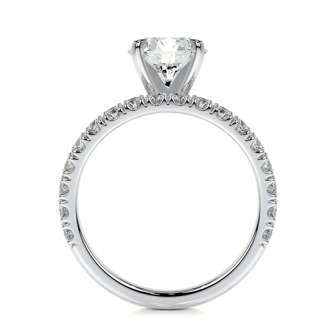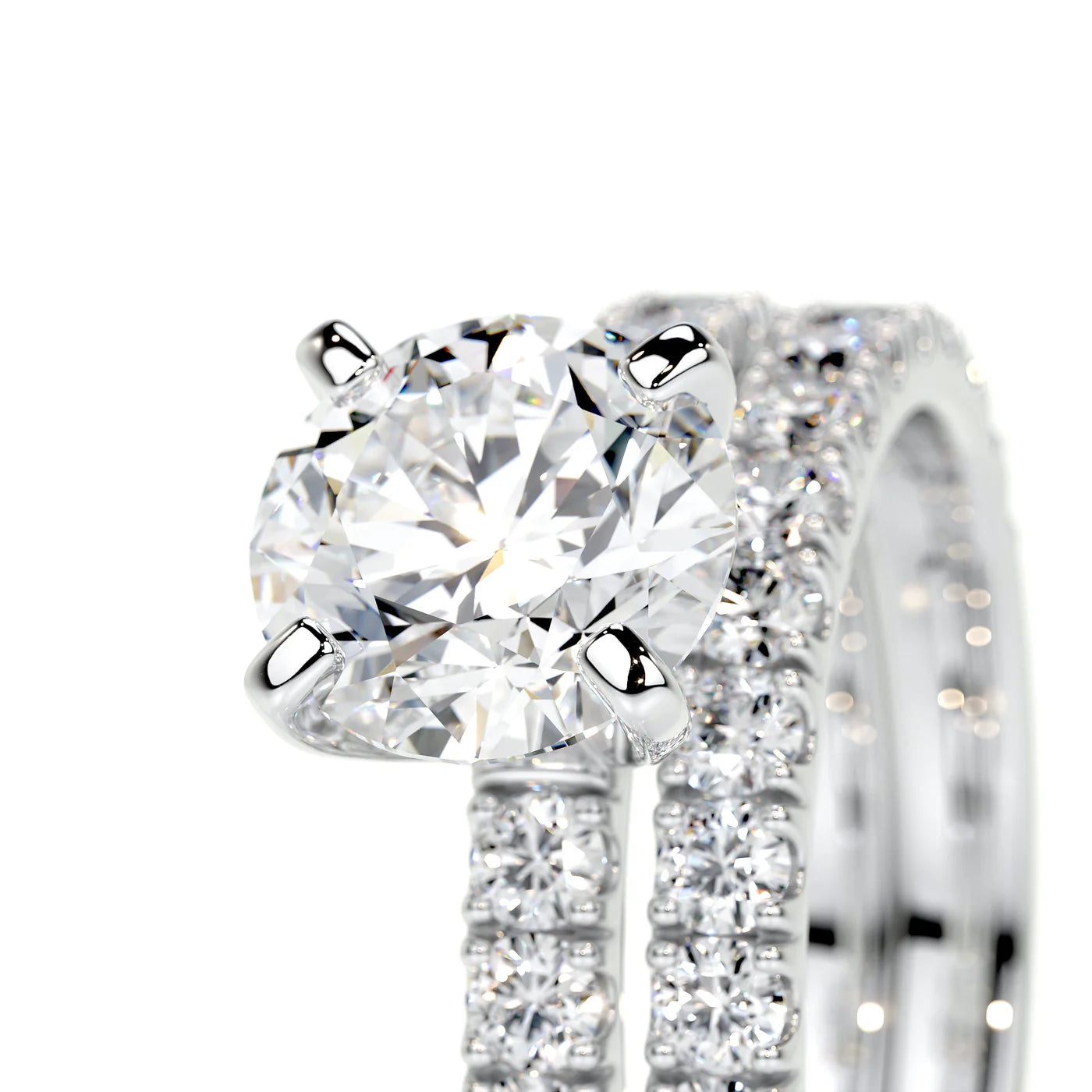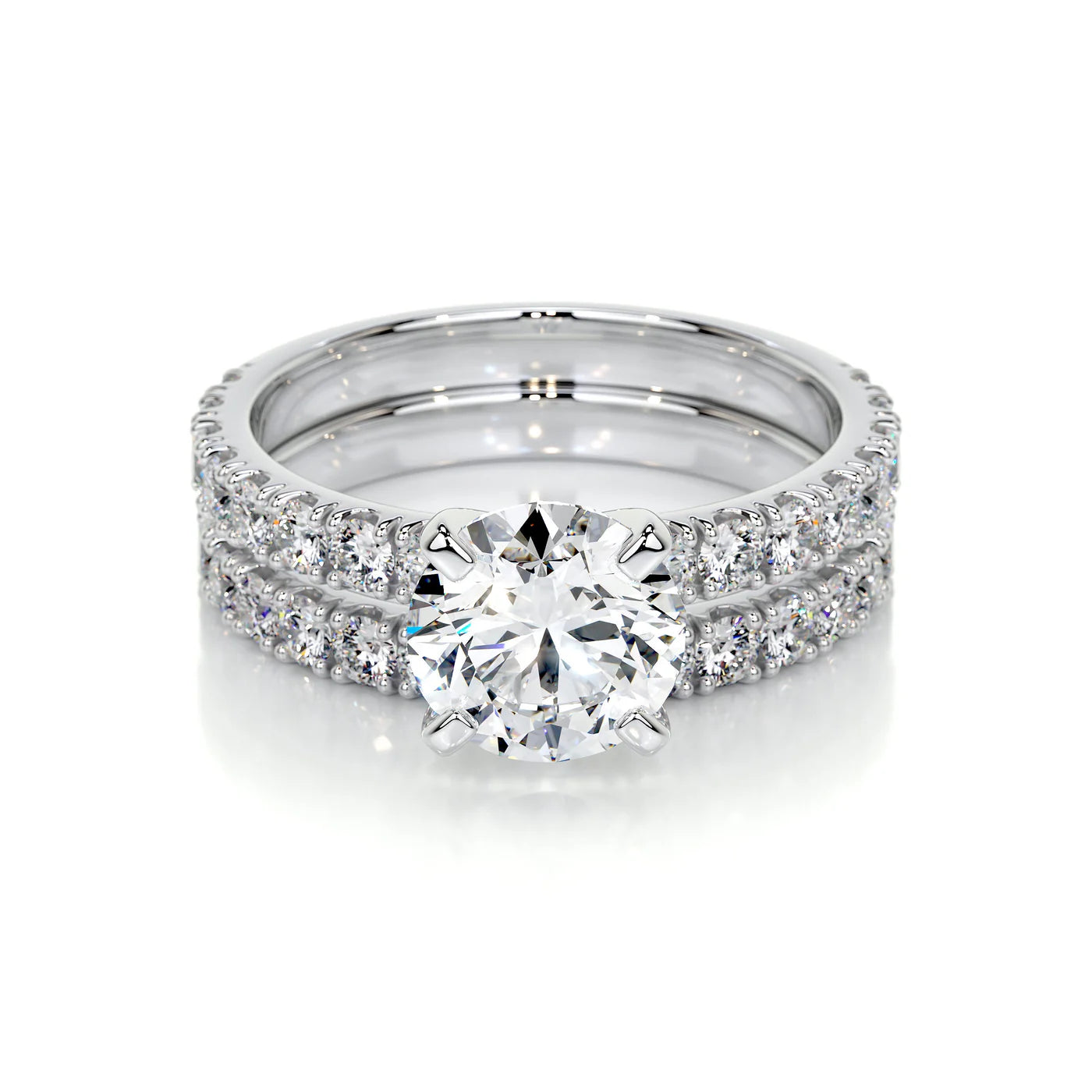 Diamonds: The main stone in picture is a 1.5 Carat E VS1 Round diamond; the side diamonds have total 1 Carat diamonds
