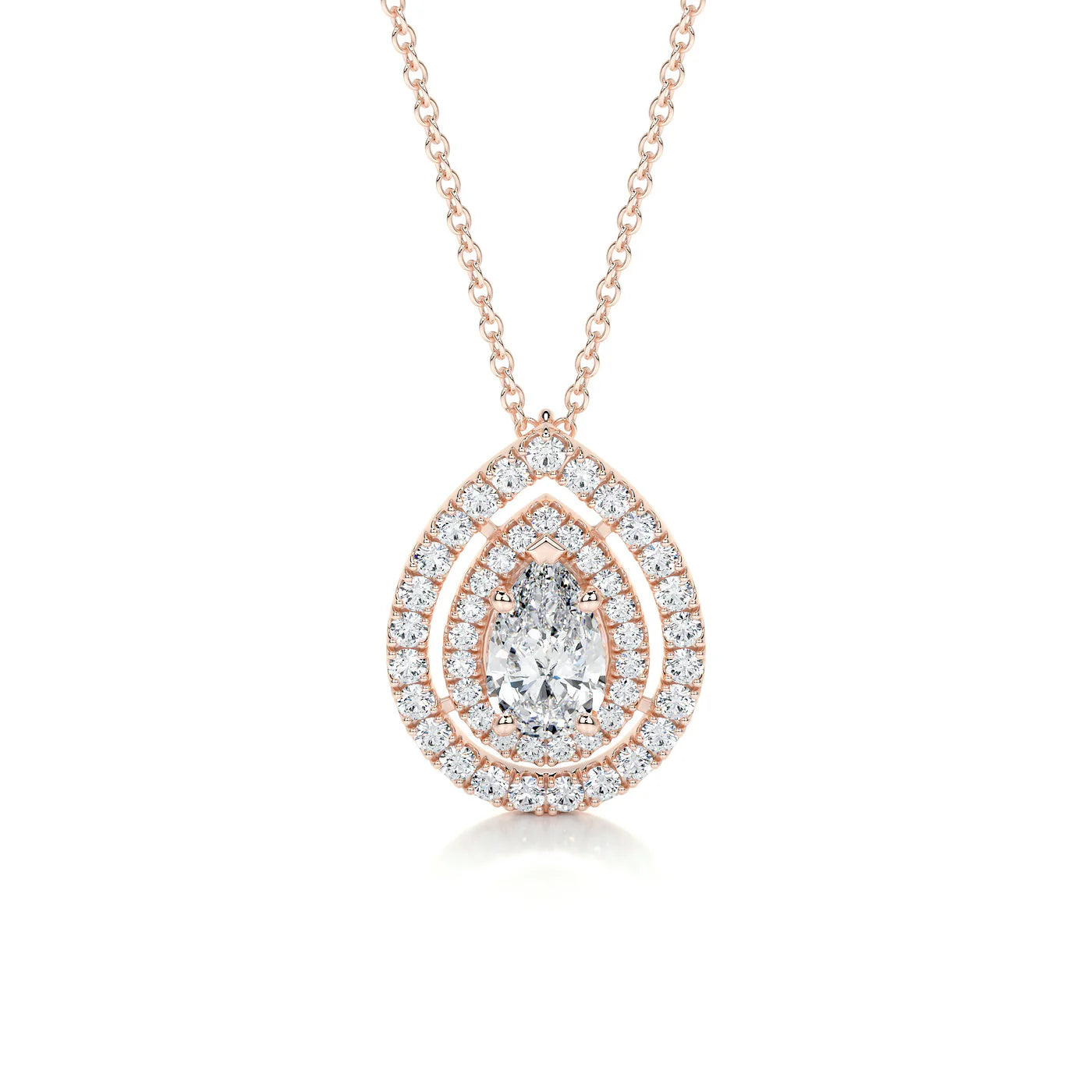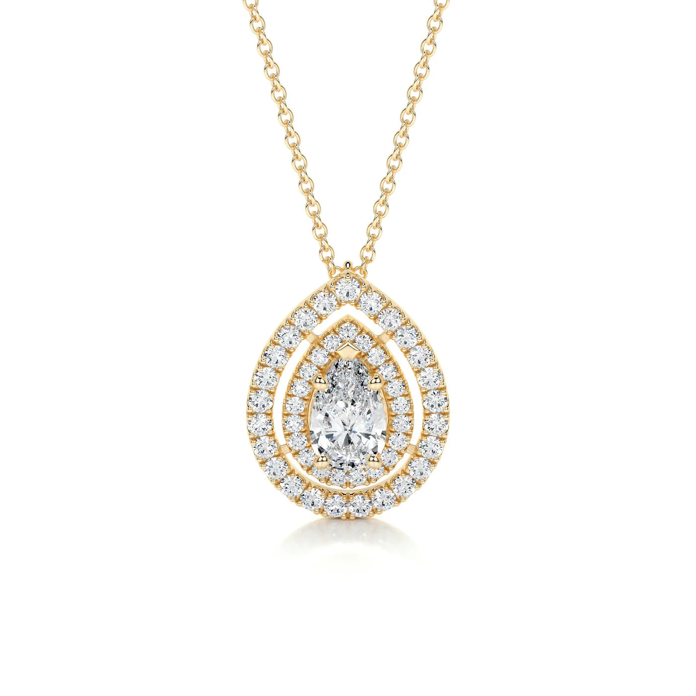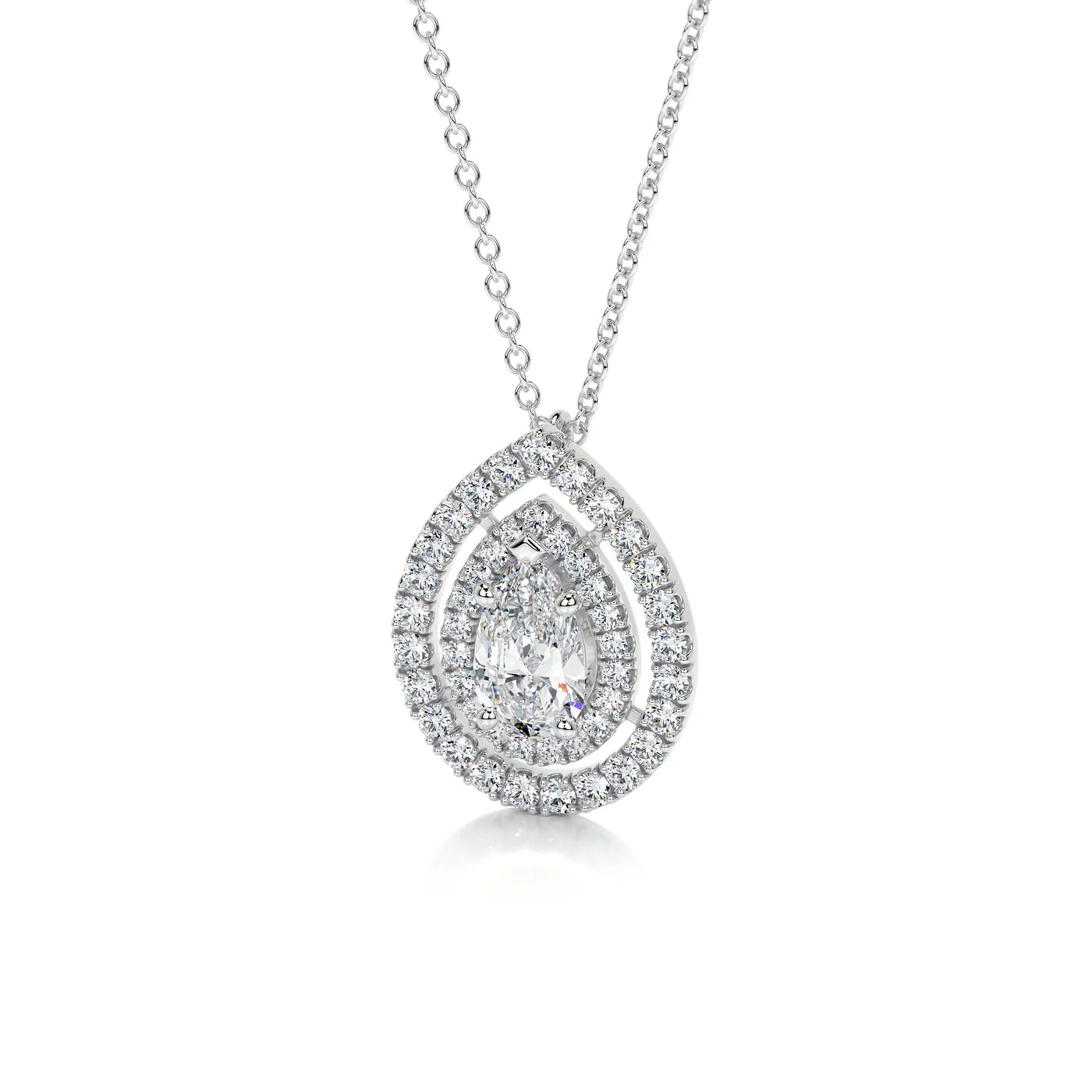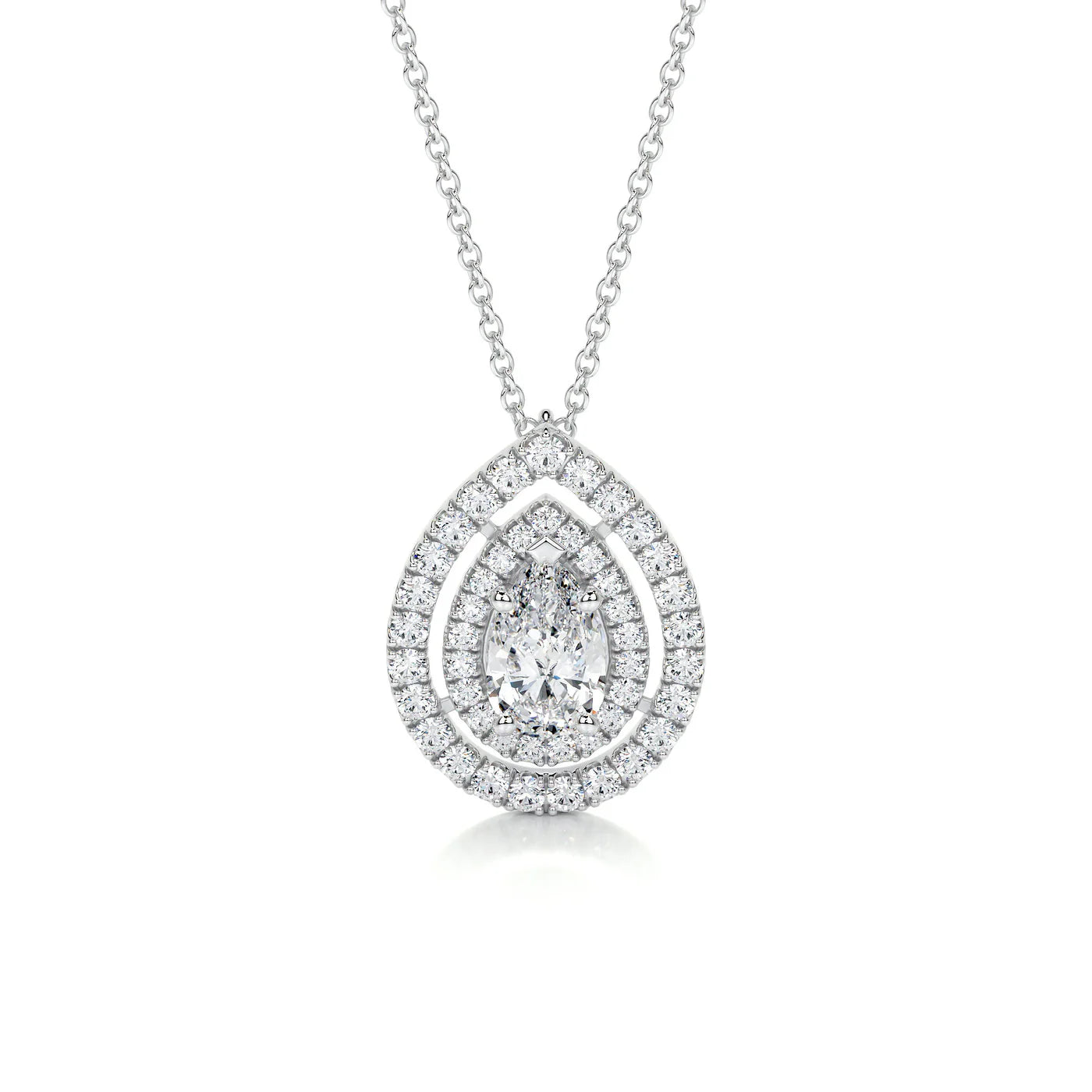 Necklace Style: Double Halo with center pear-shaped solitaire stone