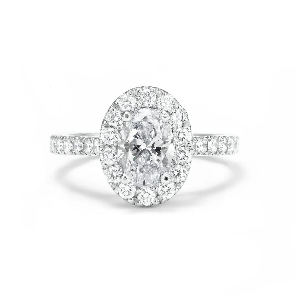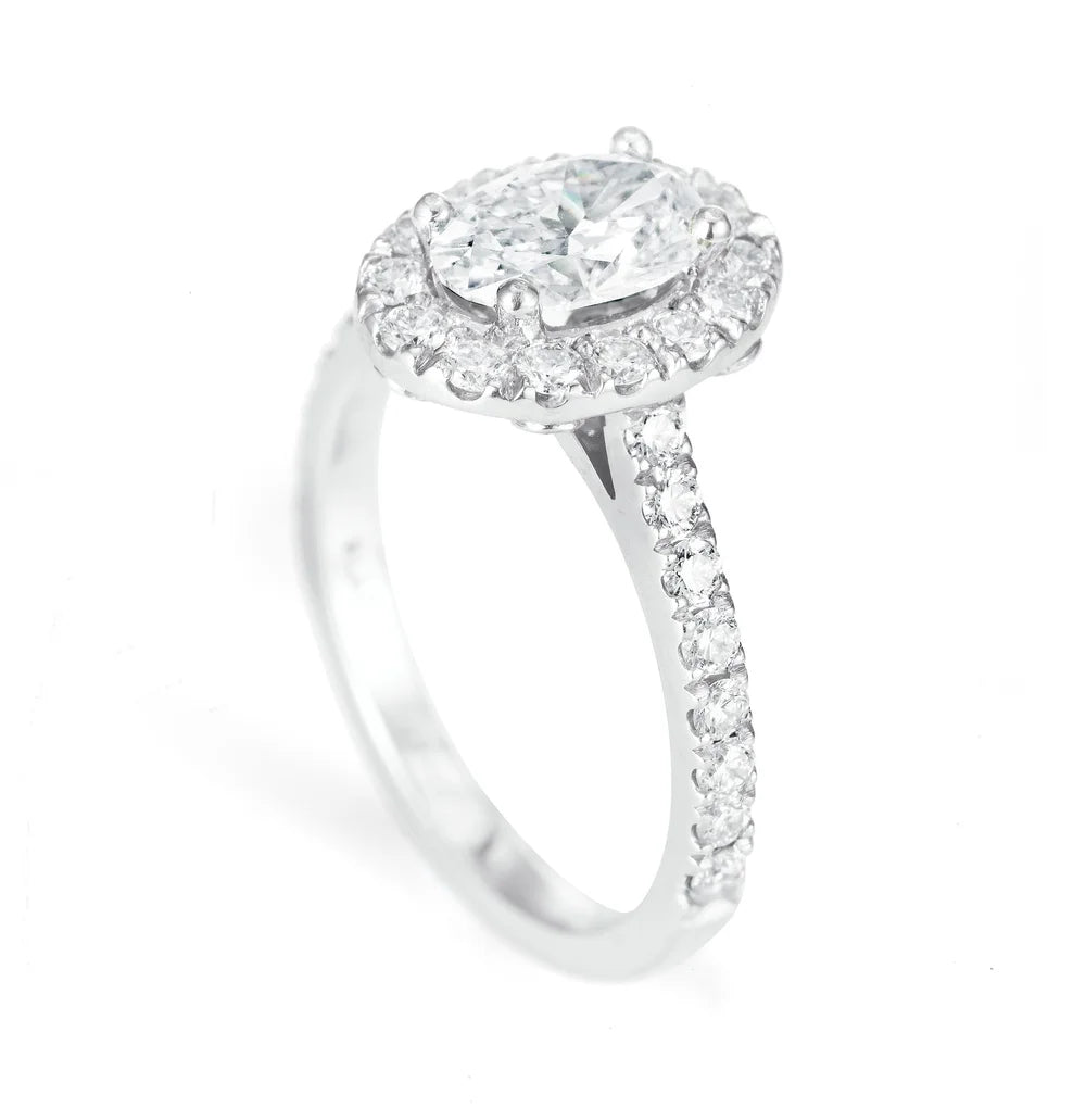 The ring in picture features a 1.00-carat Oval Brilliant Diamond with a total diamond weight of 1.74 carats.