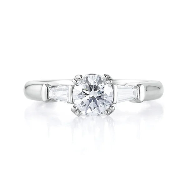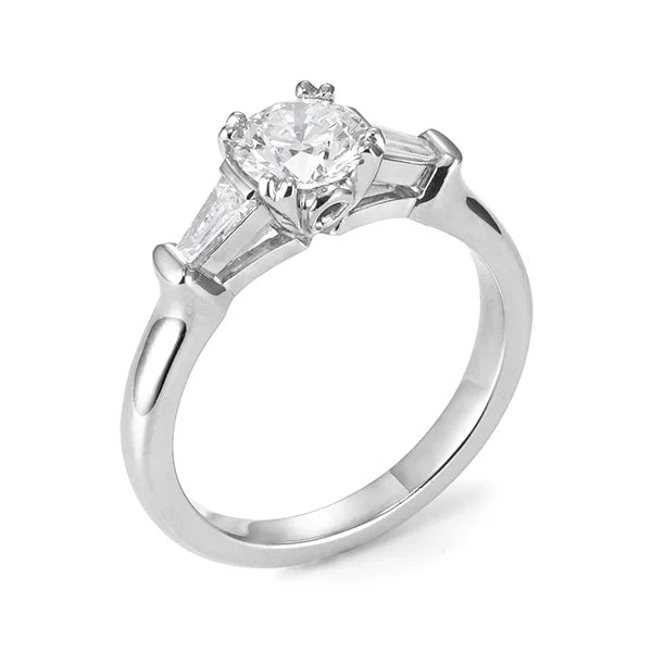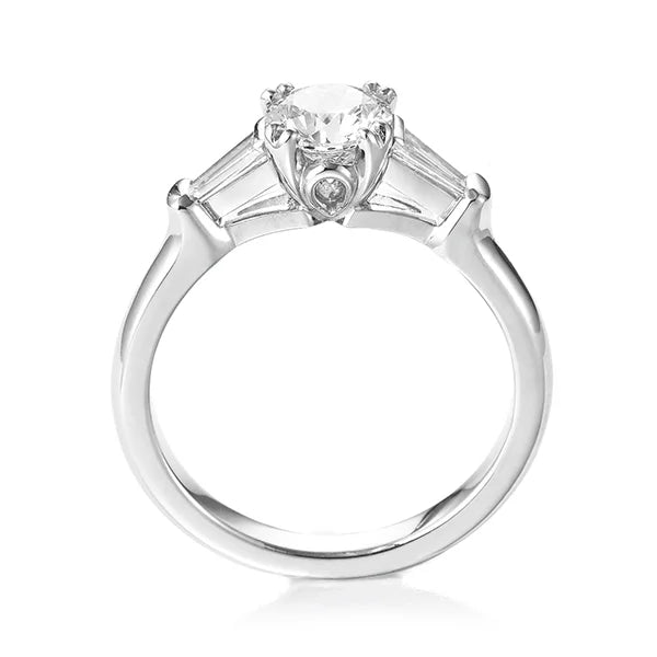 Graceful yet striking, this handcrafted gold ring draws inspiration from the strength and artistry of timeless bridges. A brilliant one-carat round or emerald diamond sits at its heart, beautifully elevated by tapered baguettes that mirror clean architectural lines. The result is a design that is as enduring as love itself—an exquisite balance of structure and romance.