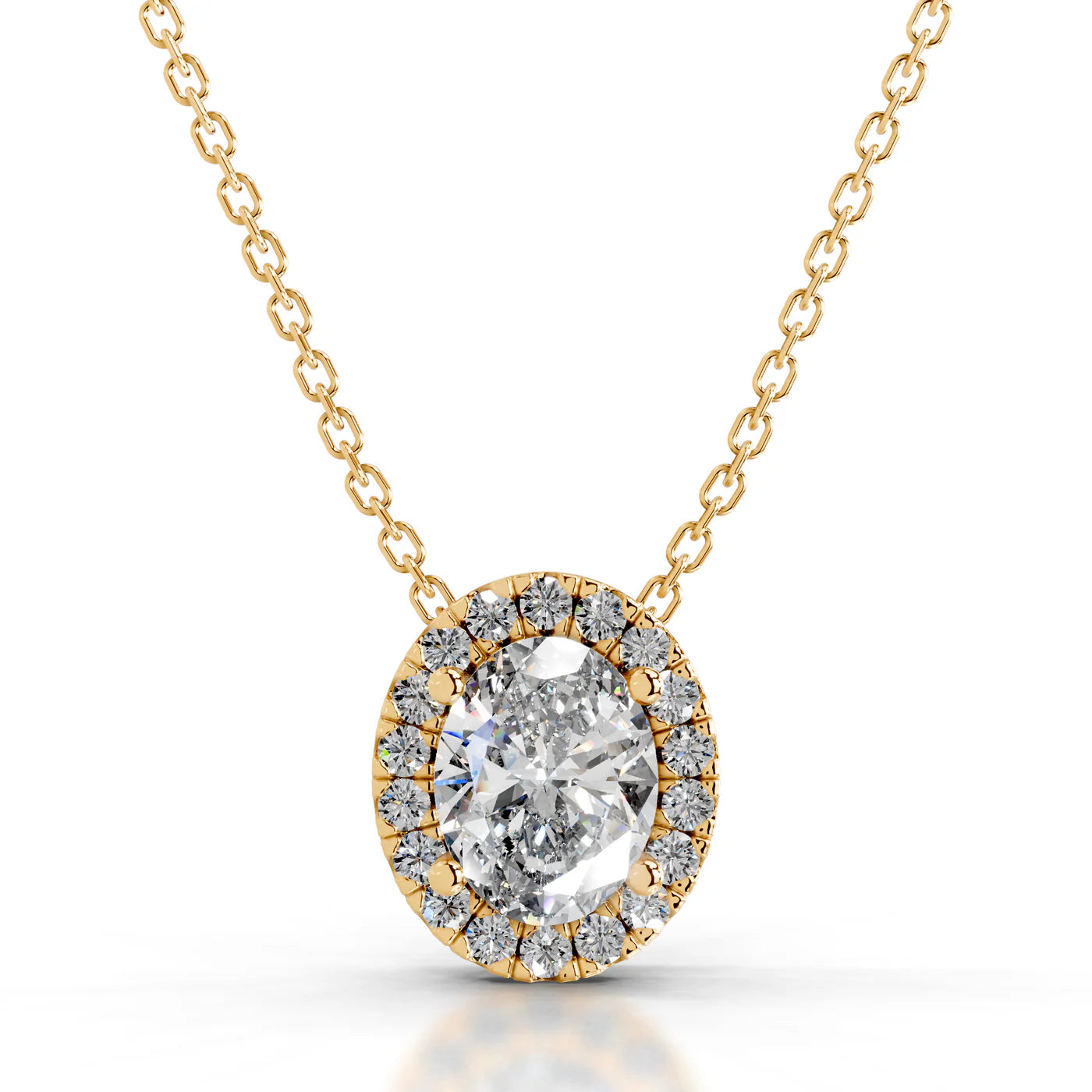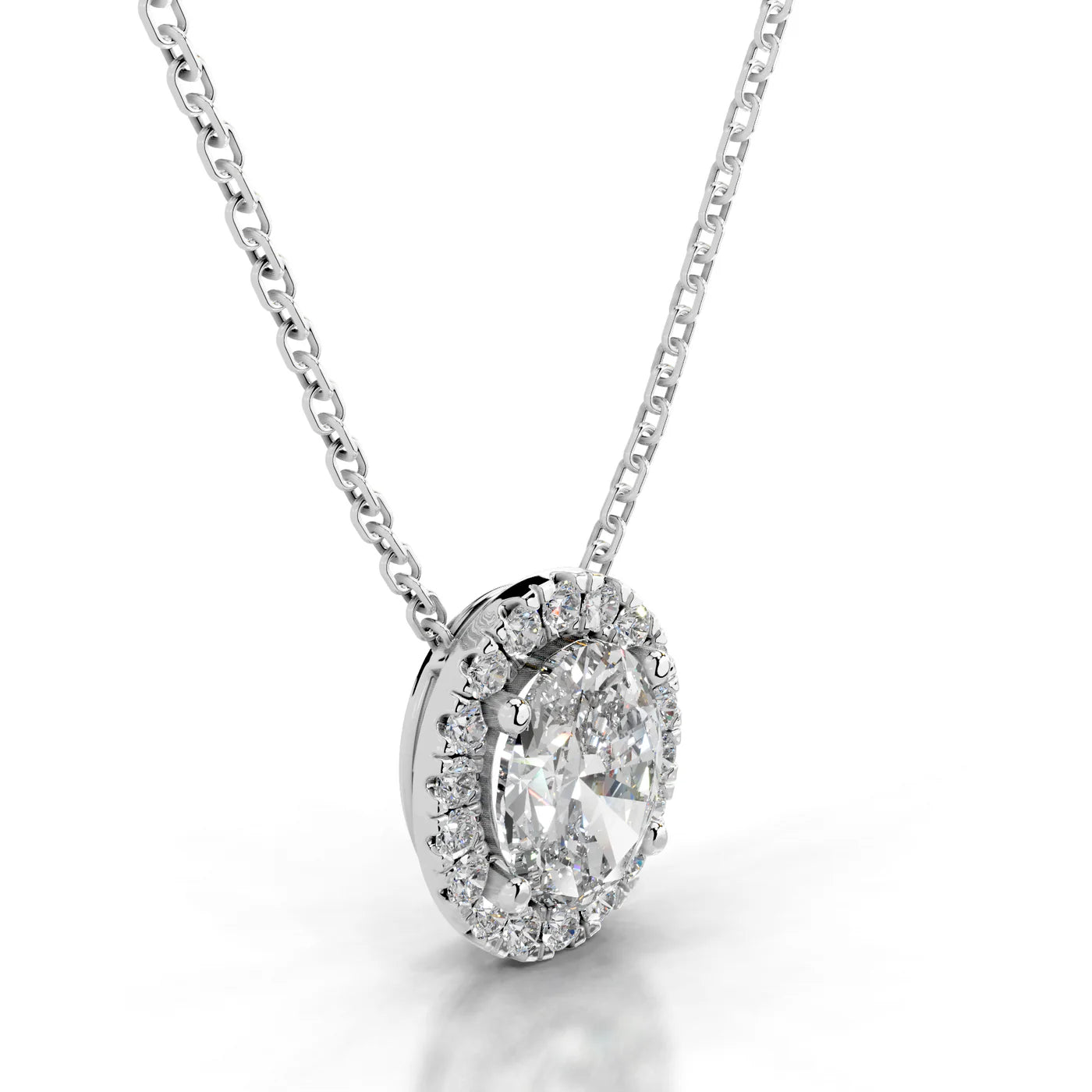 Necklace Style: Halo with center oval solitaire stone