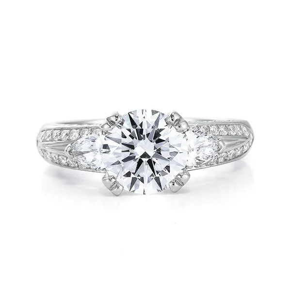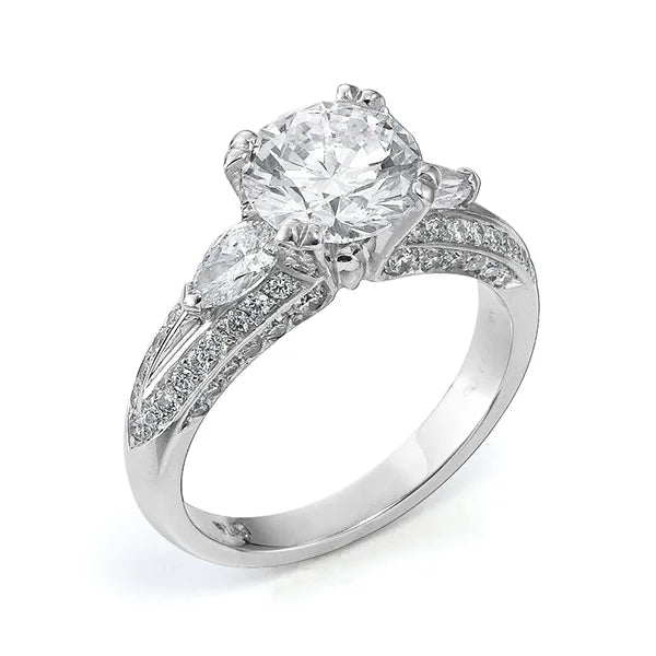 Diamonds: The main stones in picture are 2 Carat E VVS2 Round diamond; the Sides are approx 1 Carat pear diamonds