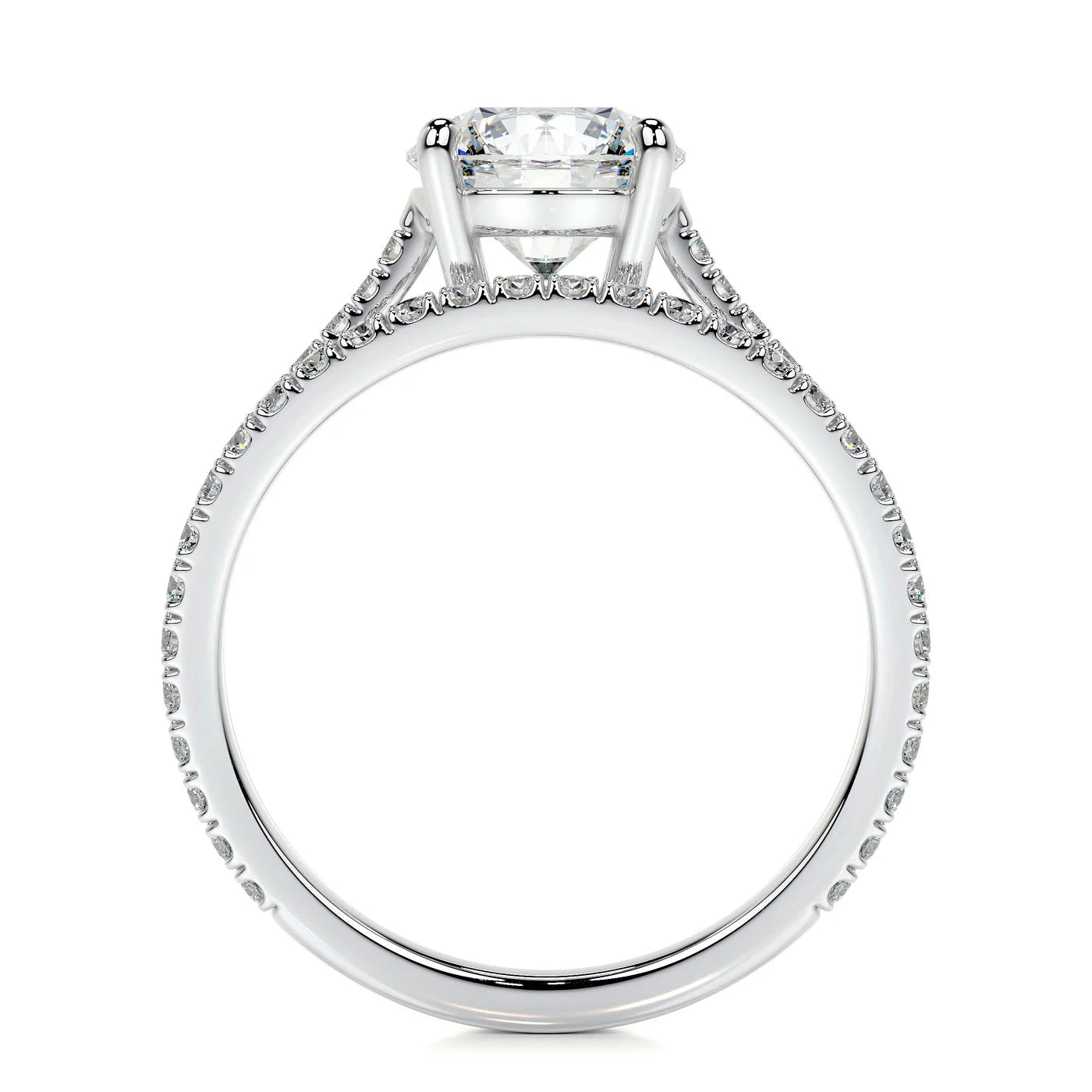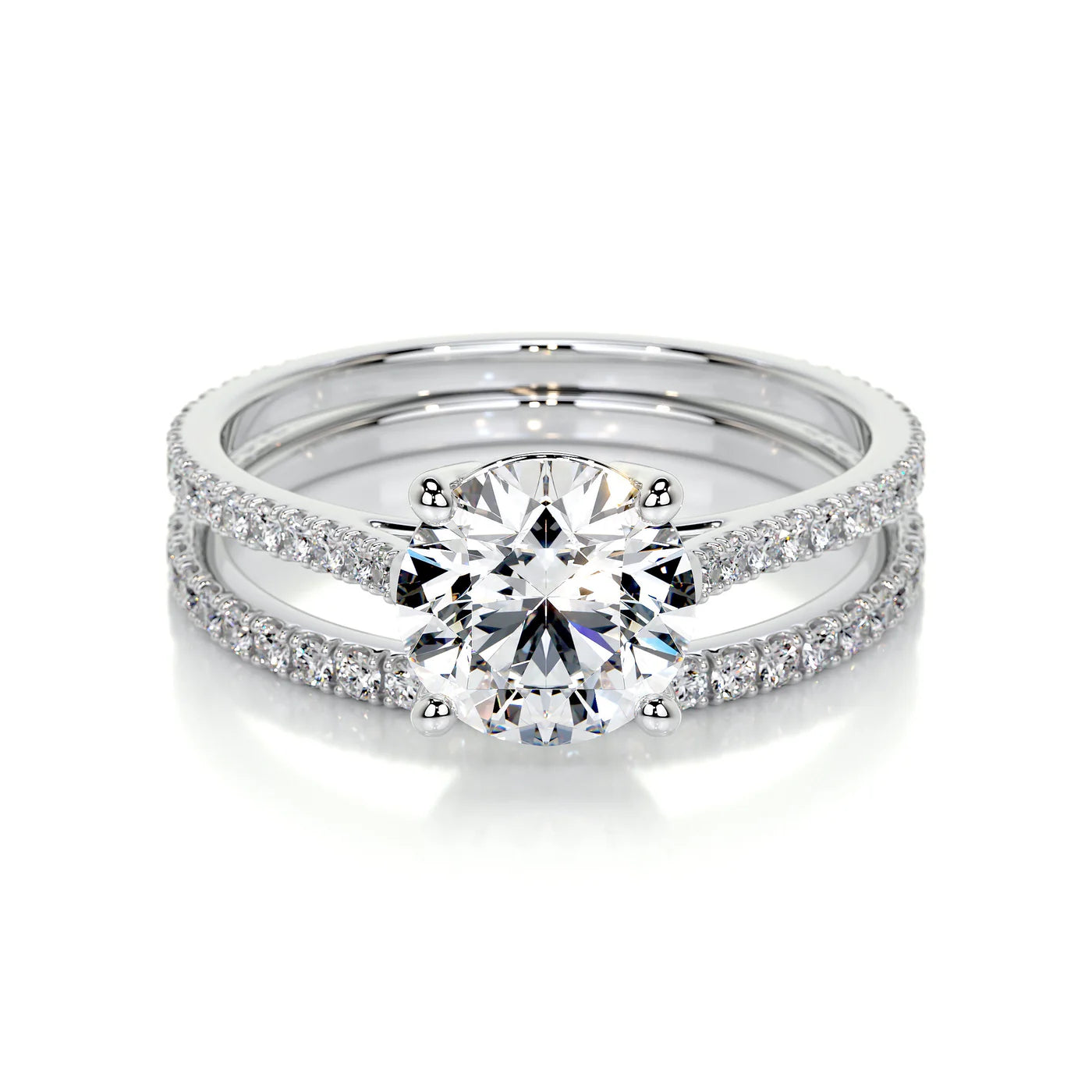 Diamonds: The main stone in picture is a 1.5 Carat E VVS2 Round diamond; the Sides are 0.5 Carat diamonds