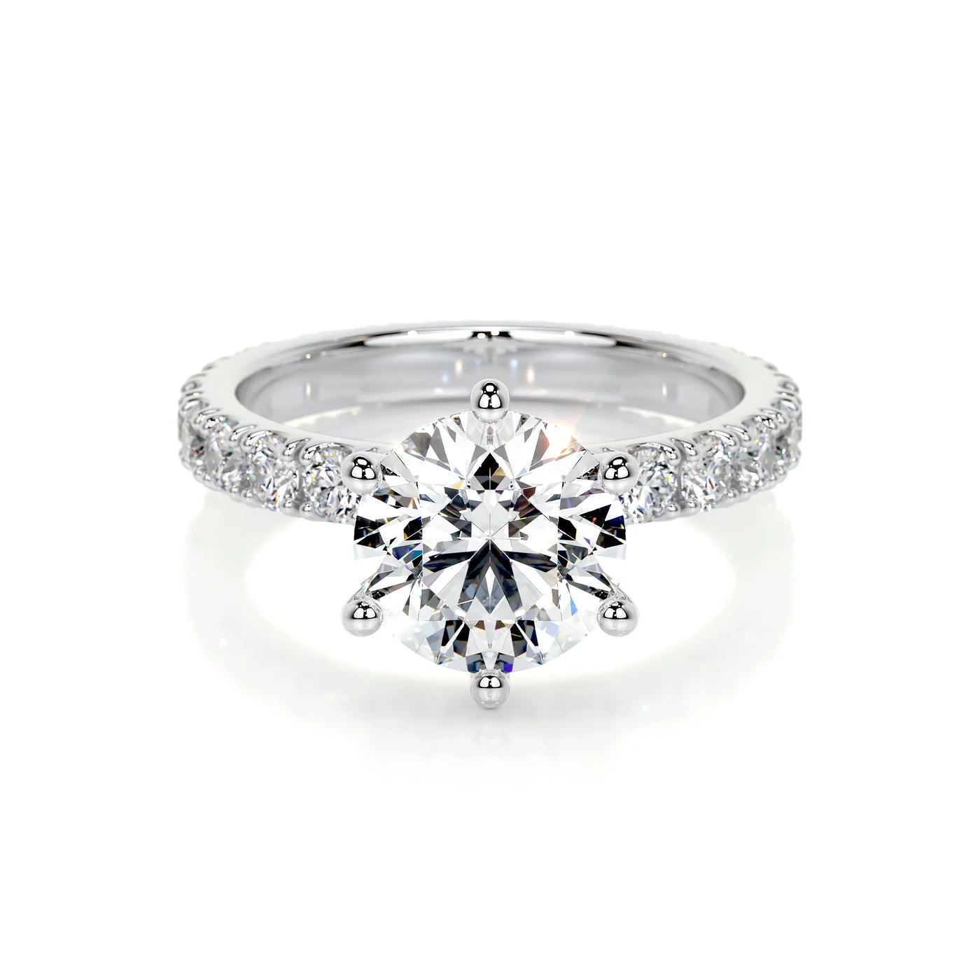 Diamonds: The main stone in picture is a 1.5 Carat E VVS2 Round diamond; the Sides are 0.75 Carat diamonds