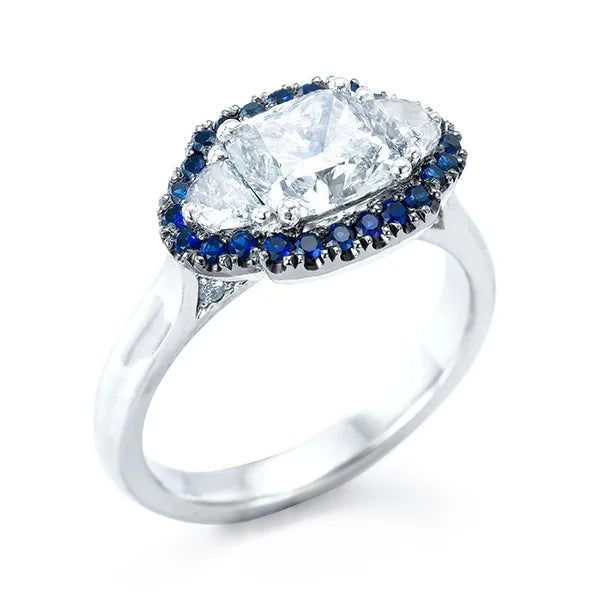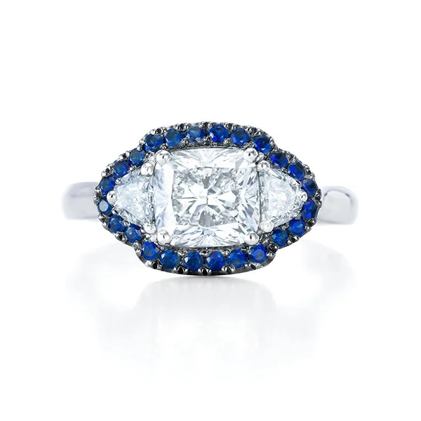 Cushion-Cut Diamond & Sapphire Gold Ring