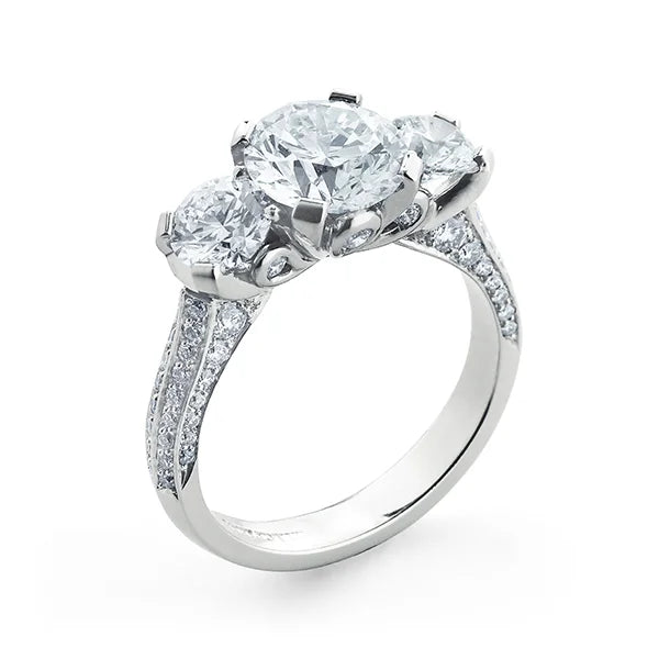 Picture shown features three 2.0 carat center stones. This ring can be custom-crafted to reflect your unique style and budget, available from 0.7 carats and up.