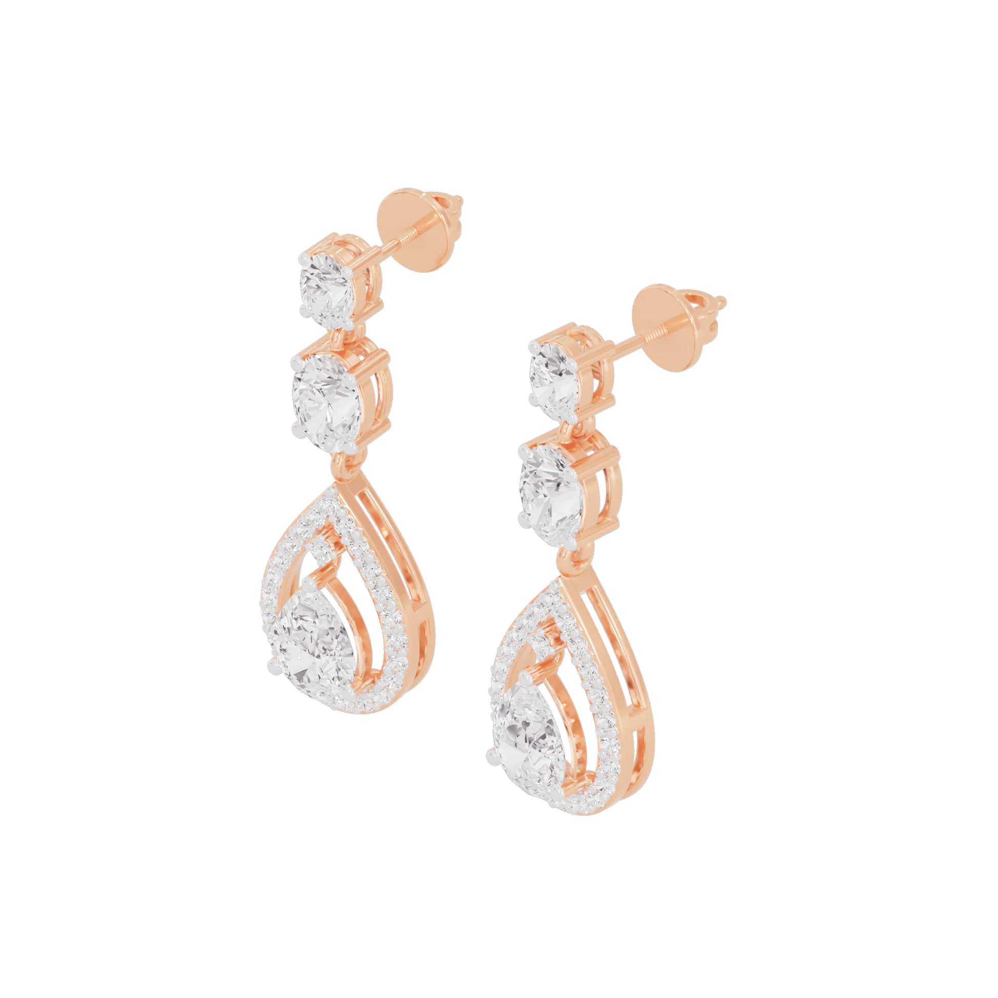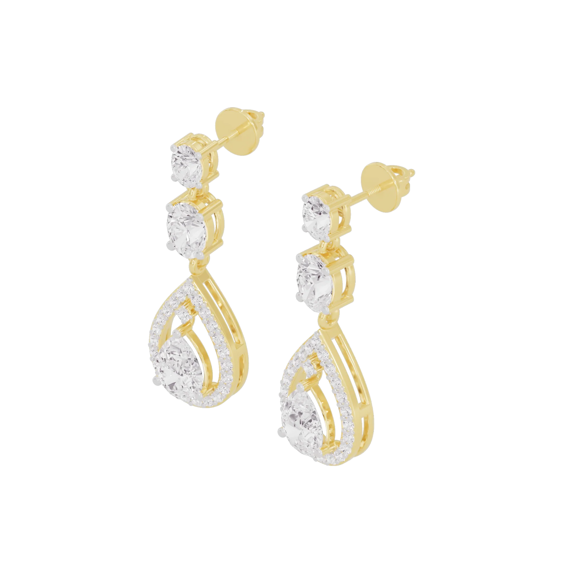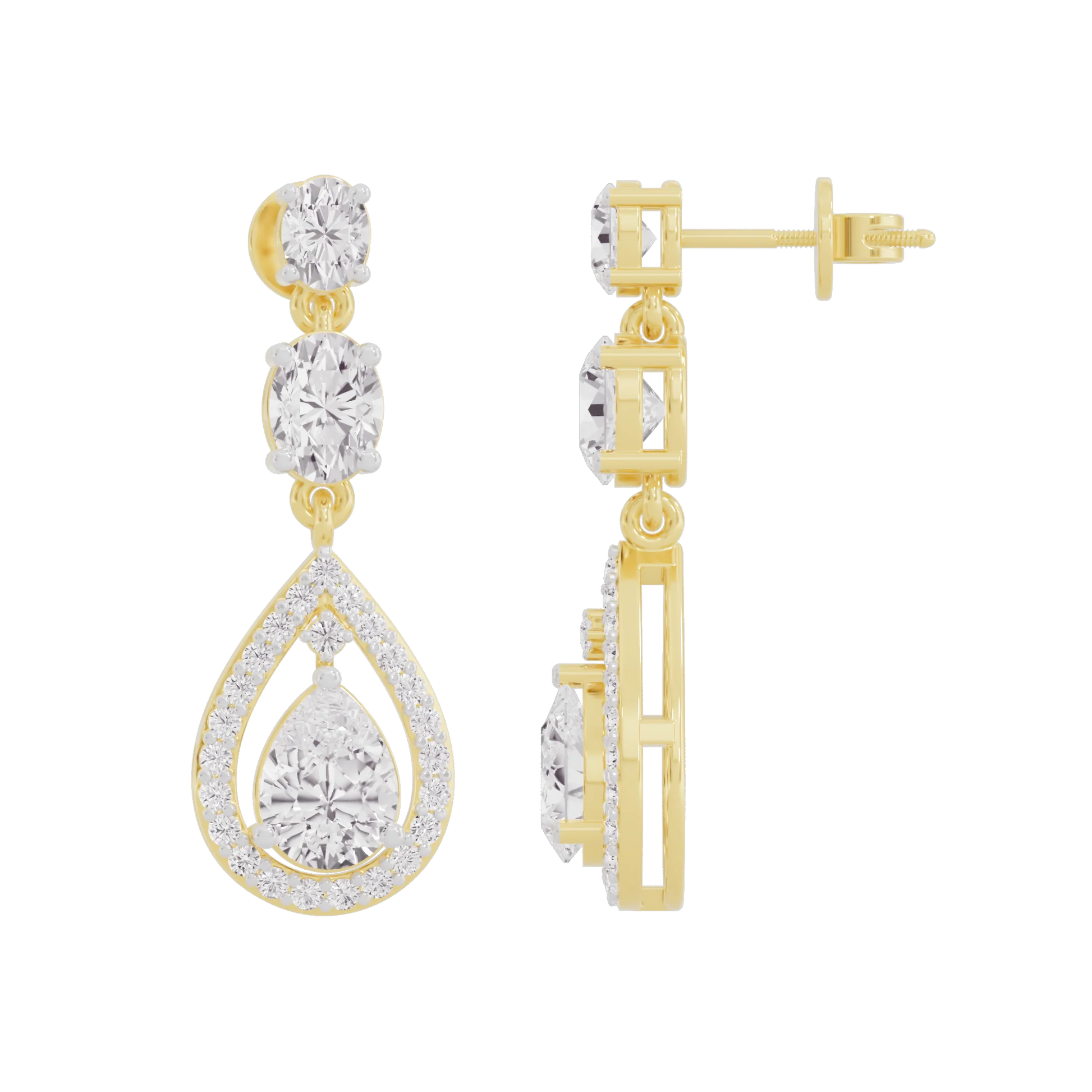 Earrings Style: Drop style earrings with oval and pear shaped solitaire stone.